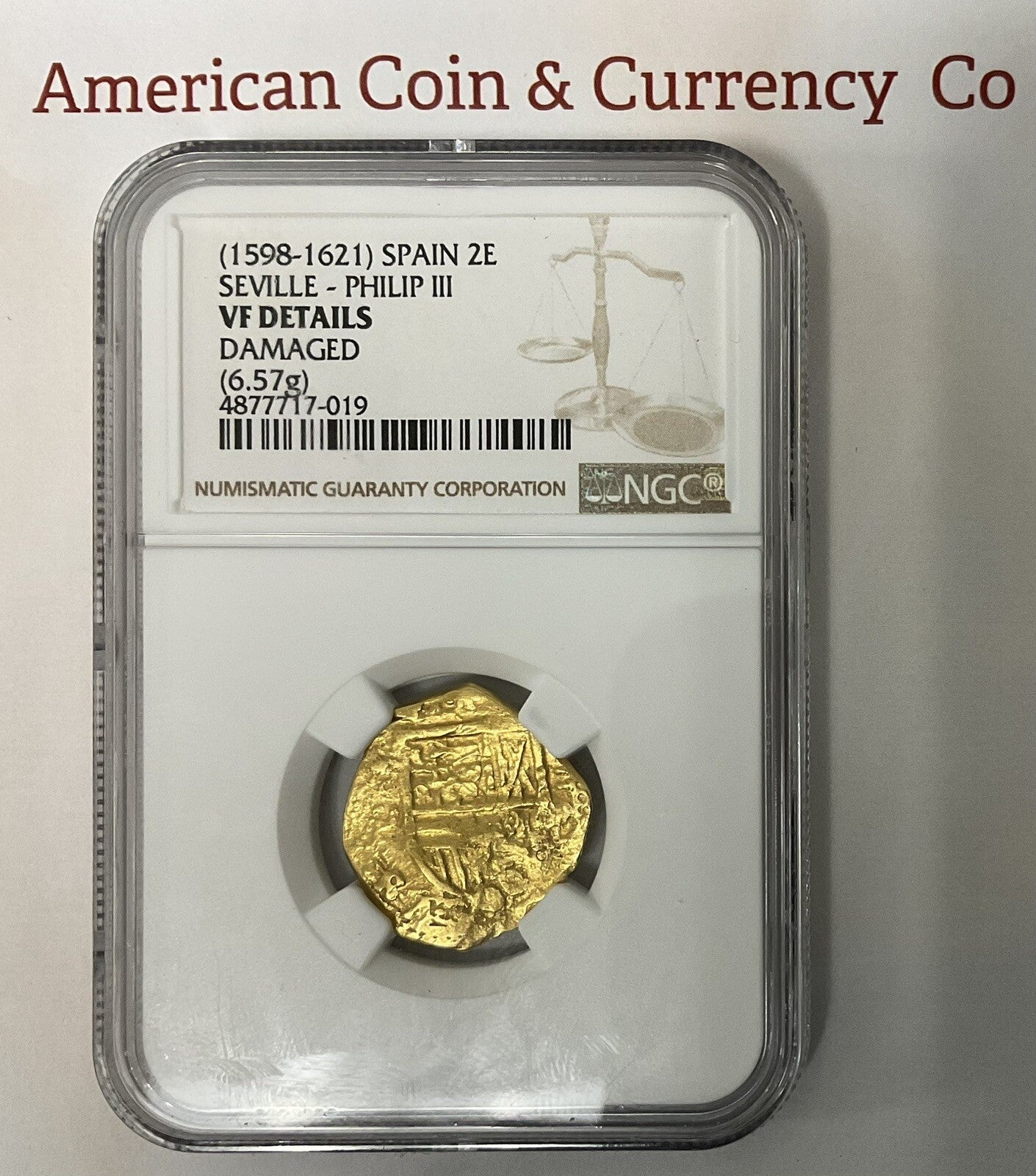(1598-1621) Spain 2 Escudo Seville Philip III NGC VF Details "Damaged"