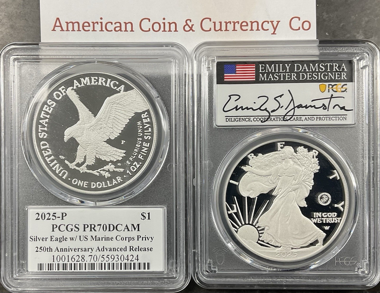 2025-P Silver Eagle W/ Marine Privy PCGS PR70DCAM 250th Anniv Advanced Release