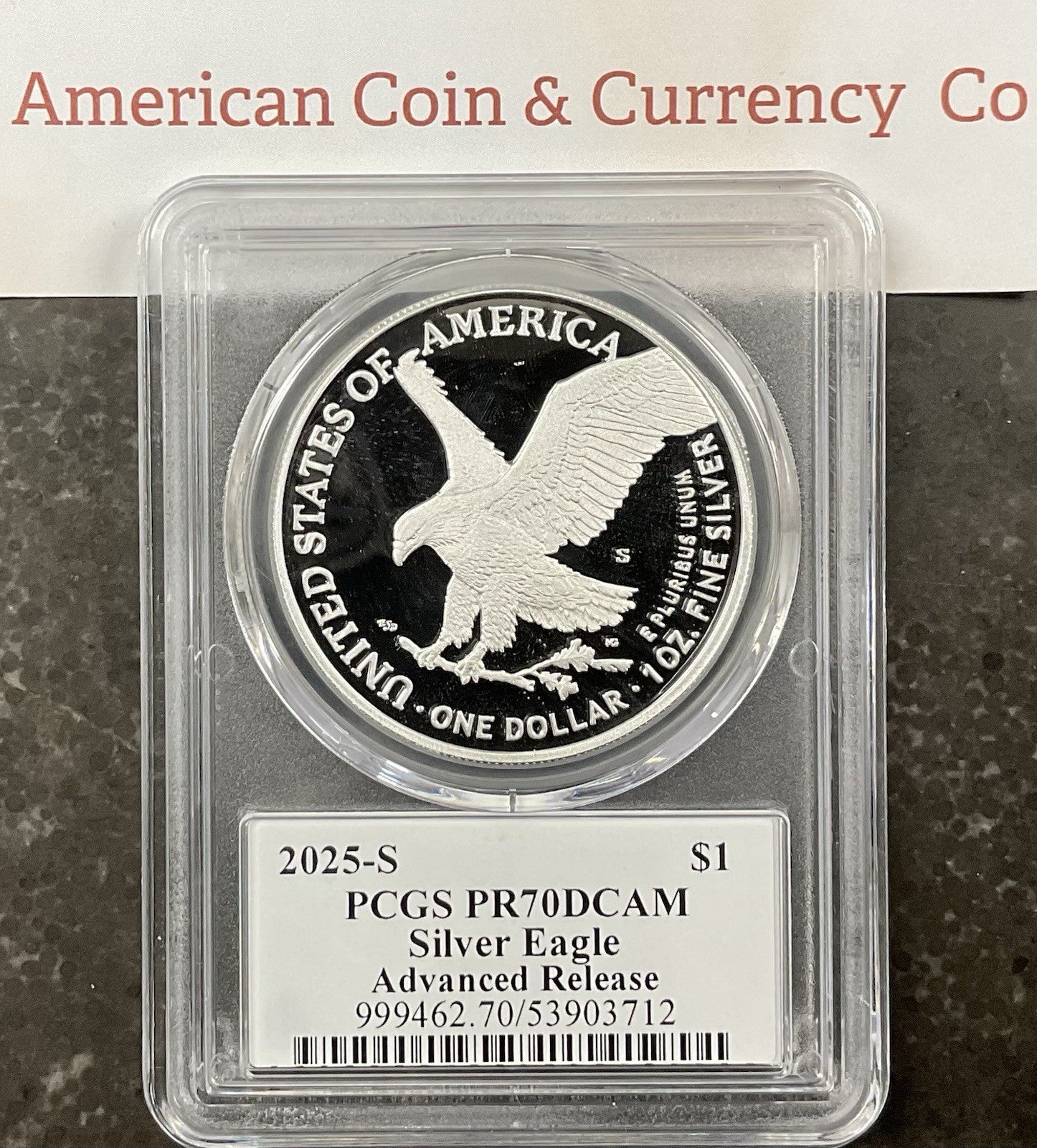 • 2025-S American Silver Eagle Proof PCGS PR70DCAM Advanced Release Damstra Signed
